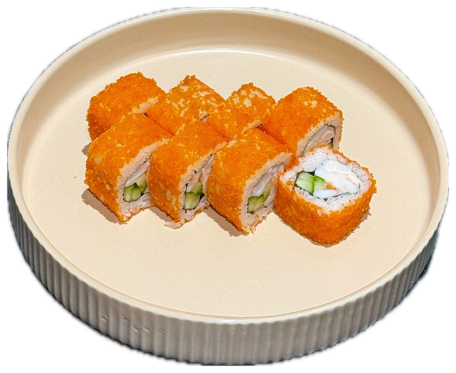 Рис, нори, японский майонез, огурец, креветка, тобико