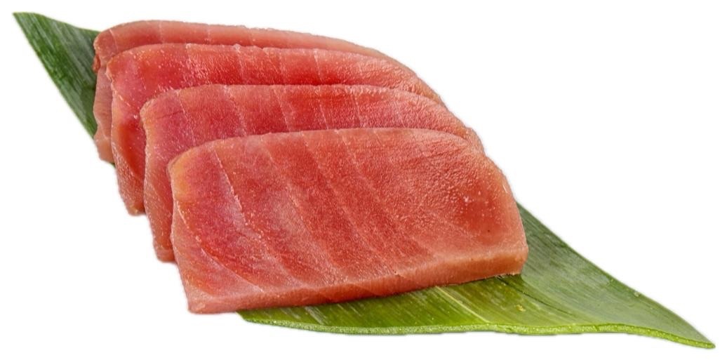 Нежные ломтики тунца, аккуратно нарезанные и поданные в стиле сашими. Свежесть и лёгкость рыбы создают утончённое вкусовое впечатление.