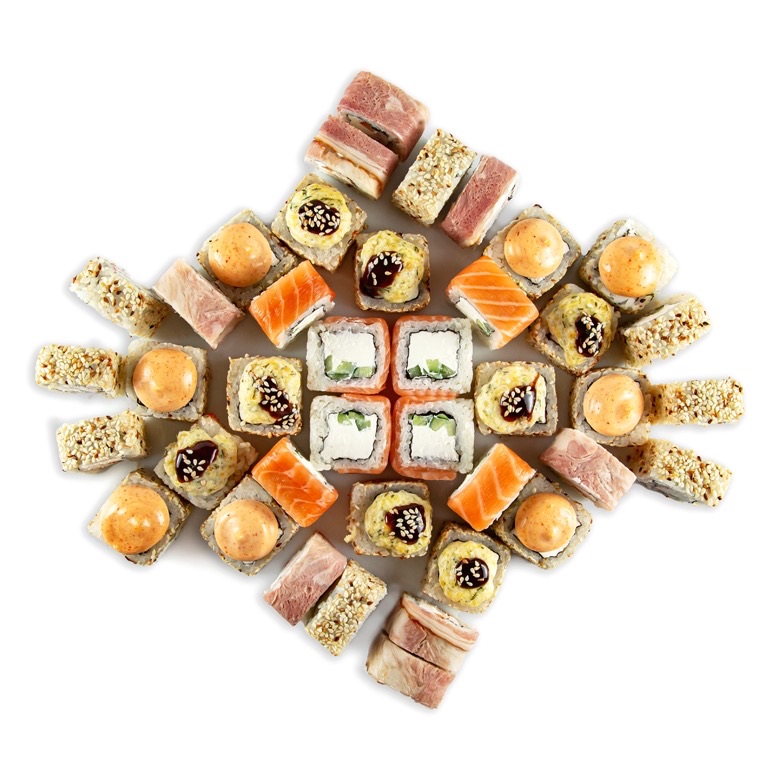 Рис, нори, сливочный сыр, огурец, курица, кунжут, спайси соус