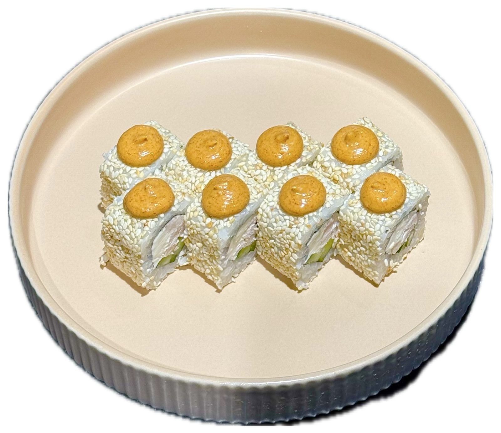 Рис, нори, сливочный сыр, огурец, курица, кунжут, спайси соус