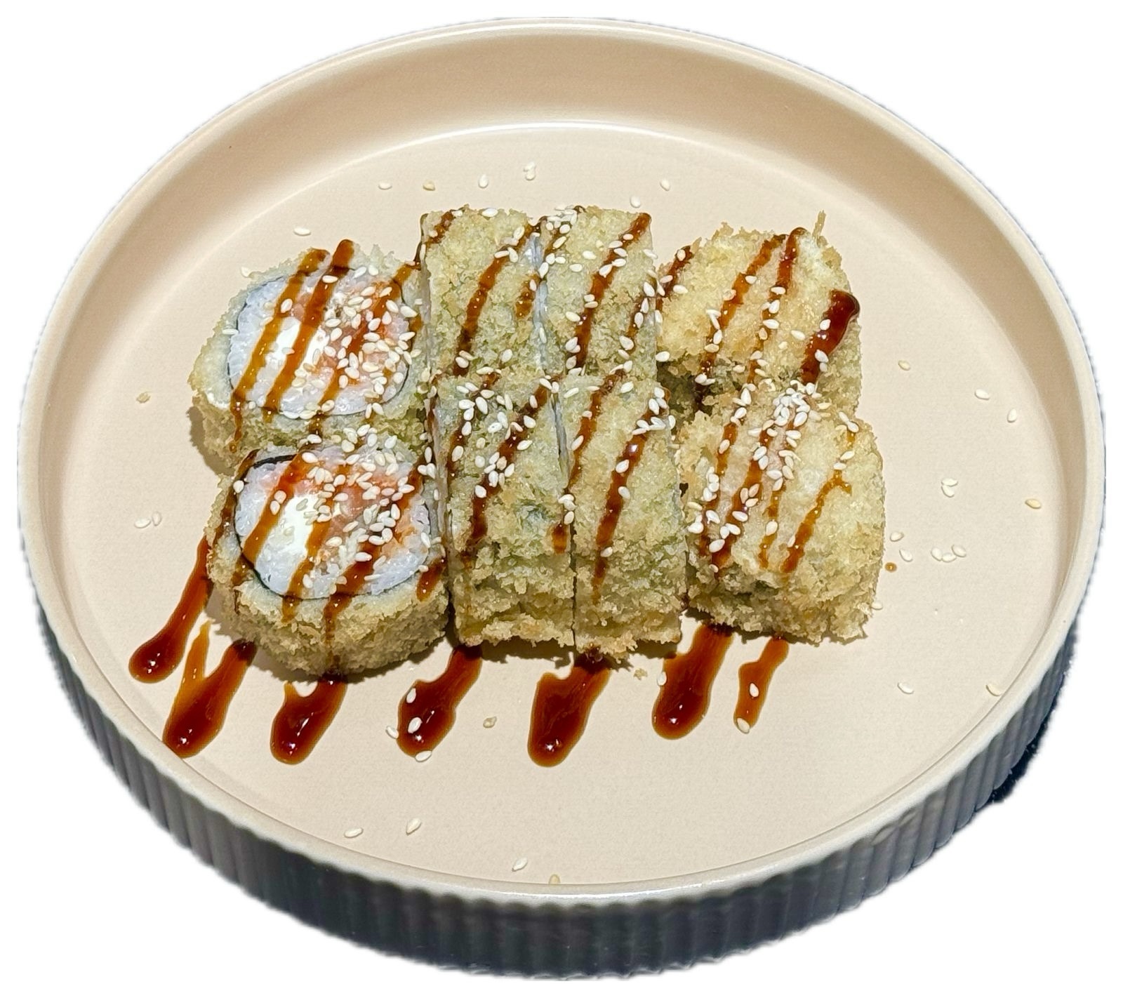 Рис, нори, сливочный сыр, масаго, лосось, угорь.